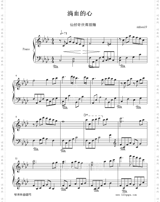 点击页面上方免费下载和打印 淌血的心-仙剑奇侠传曲谱,即可免费下载和打印本曲谱全部内容简谱是音乐的密码本,音符是跳动的心电图。琴谱123曲谱网帮助每个热爱音乐的人学习乐器