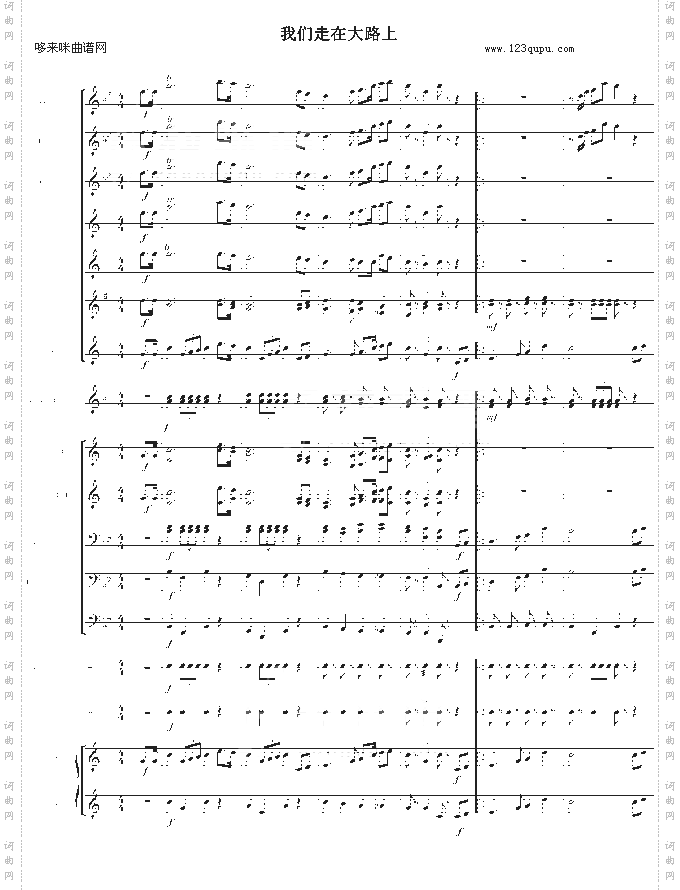 点击页面上方免费下载和打印 我们走在大路上-世界名曲曲谱,即可免费下载和打印本曲谱全部内容简谱是音乐的密码本,音符是跳动的心电图。琴谱123曲谱网帮助每个热爱音乐的人学习乐器