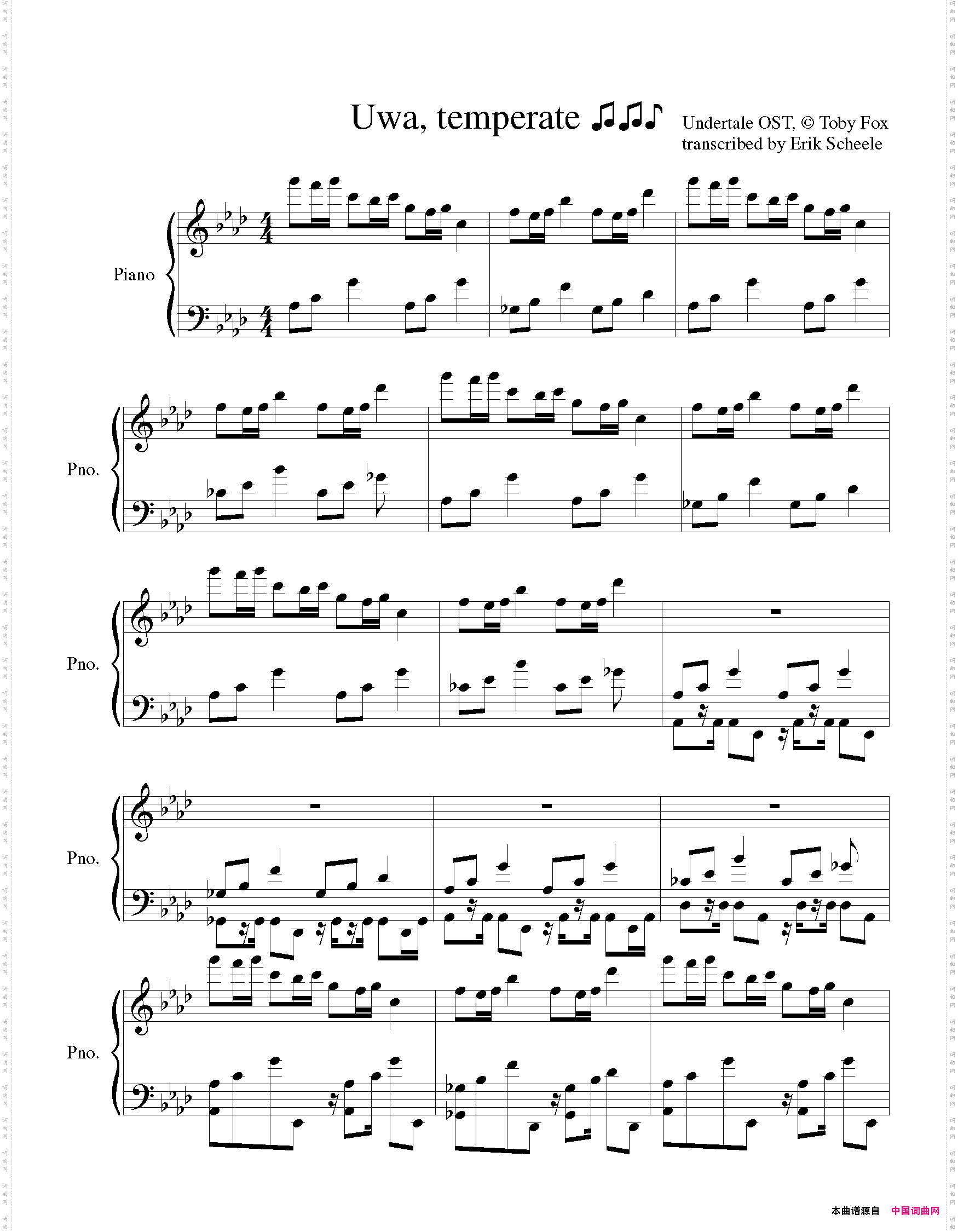 点击页面上方免费下载和打印 UwaSoTemperate曲谱,即可免费下载和打印本曲谱全部内容简谱是音乐的密码本,音符是跳动的心电图。琴谱123曲谱网帮助每个热爱音乐的人学习乐器