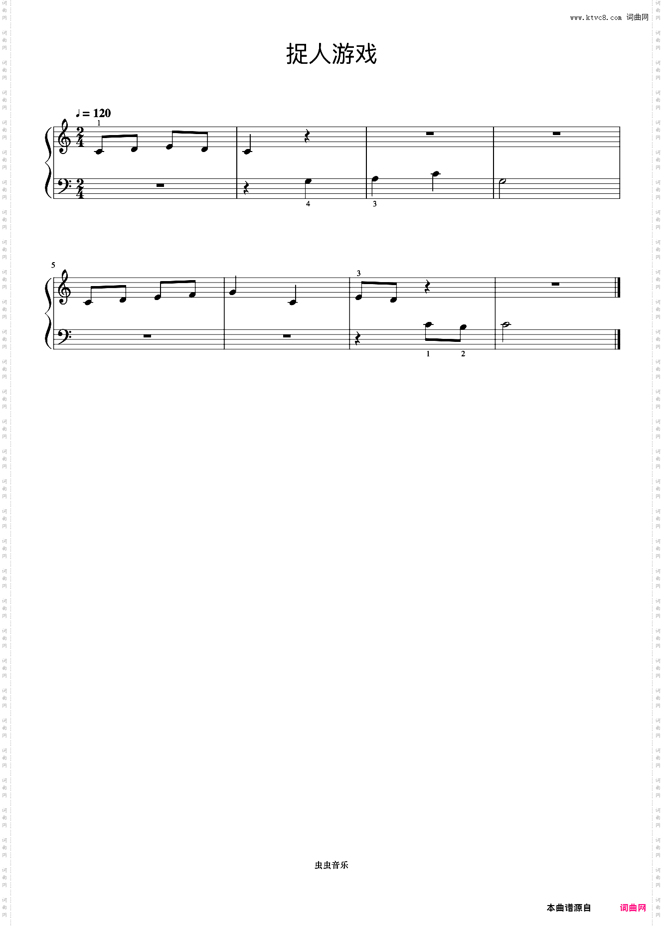 点击页面上方免费下载和打印 捉人游戏《约翰汤普森 简易钢琴教程 2》曲谱,即可免费下载和打印本曲谱全部内容简谱是音乐的密码本,音符是跳动的心电图。琴谱123曲谱网帮助每个热爱音乐的人学习乐器