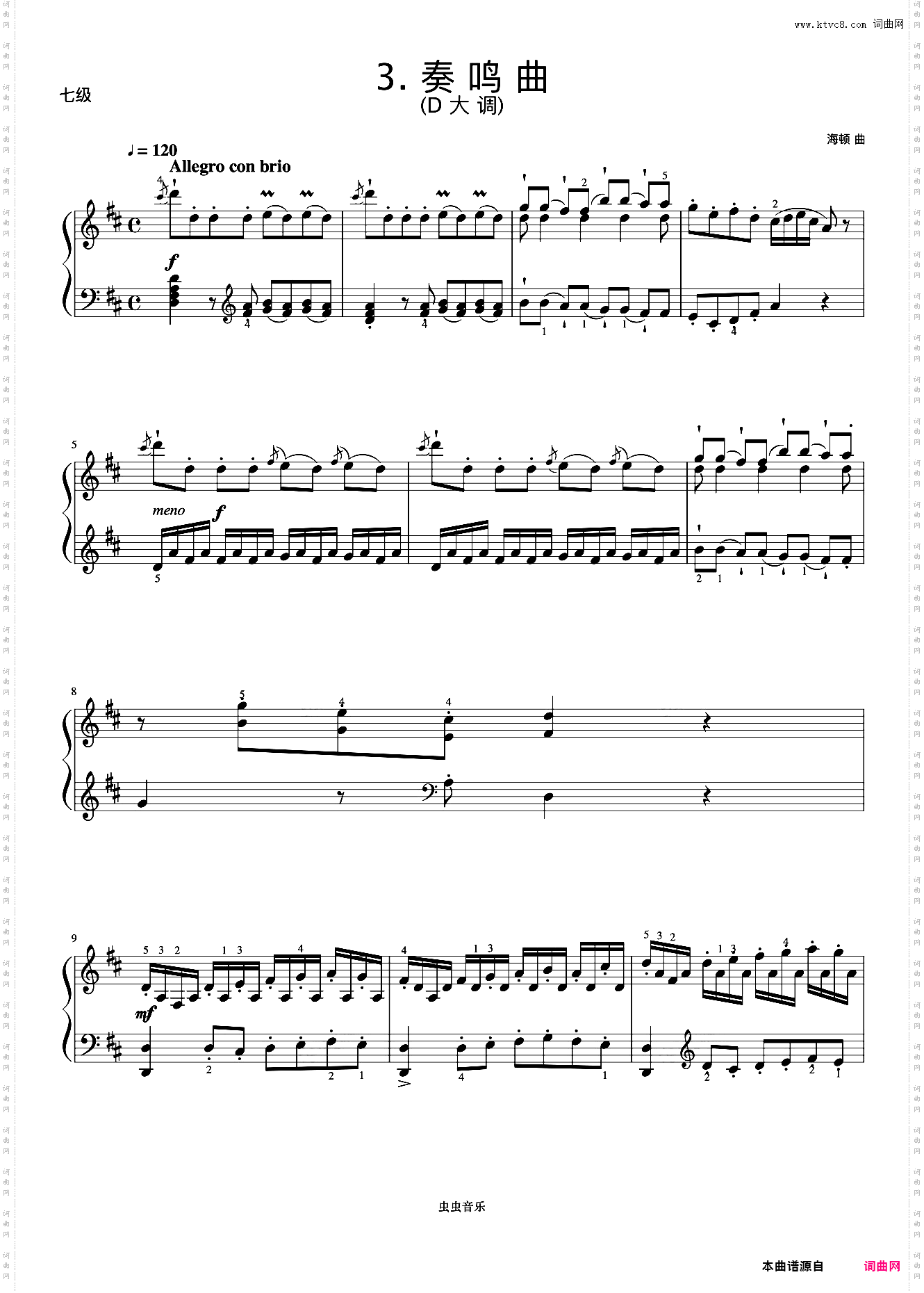 点击页面上方免费下载和打印 7级 奏鸣曲海顿《中国院钢琴考级曲目》曲谱,即可免费下载和打印本曲谱全部内容简谱是音乐的密码本,音符是跳动的心电图。琴谱123曲谱网帮助每个热爱音乐的人学习乐器
