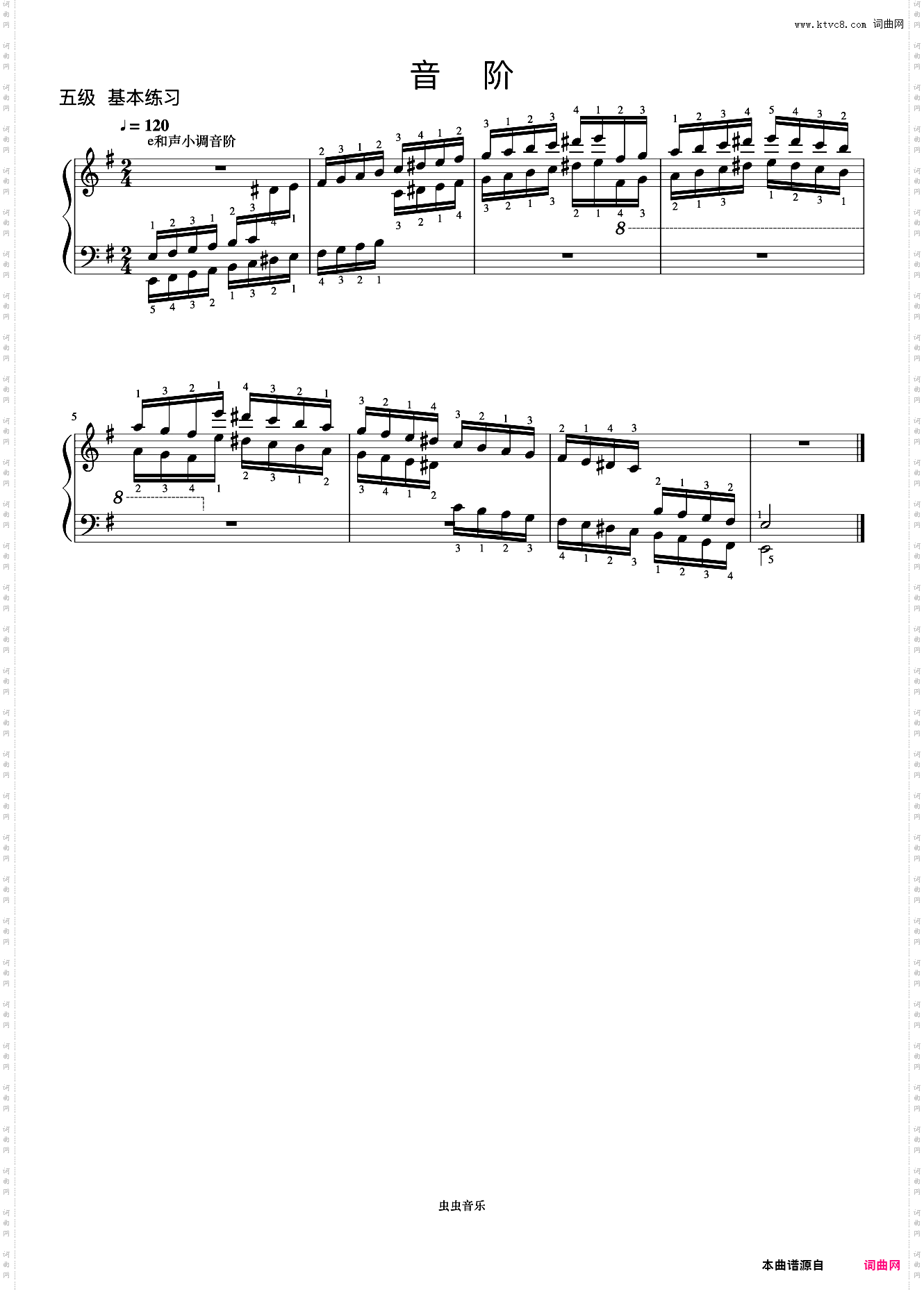 6级 e和声小调音阶《中央院钢琴考级曲目 1-6级》-钢琴曲谱