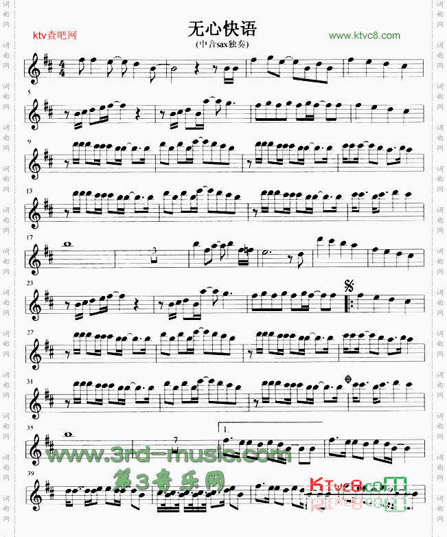 点击页面上方免费下载和打印 无心快语[萨克斯谱]曲谱,即可免费下载和打印本曲谱全部内容简谱是音乐的密码本,音符是跳动的心电图。琴谱123曲谱网帮助每个热爱音乐的人学习乐器