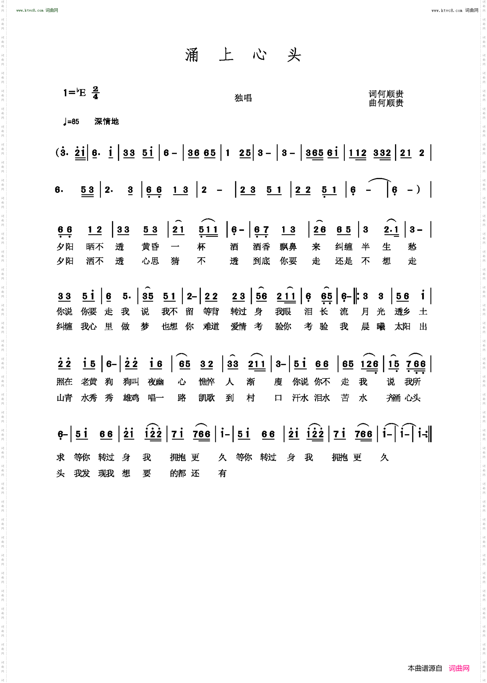 点击页面上方免费下载和打印 涌上心头曲谱,即可免费下载和打印本曲谱全部内容简谱是音乐的密码本,音符是跳动的心电图。琴谱123曲谱网帮助每个热爱音乐的人学习乐器