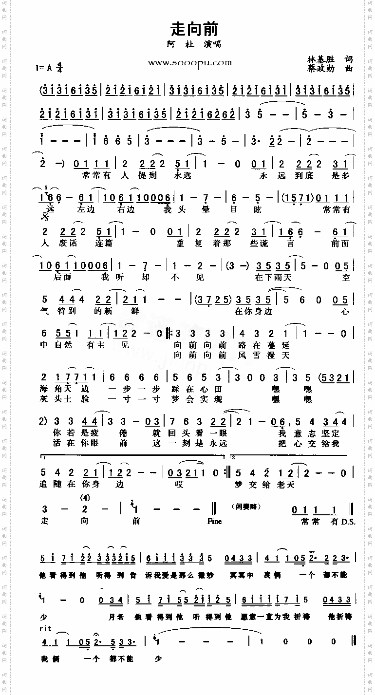点击页面上方免费下载和打印 向前走曲谱,即可免费下载和打印本曲谱全部内容简谱是音乐的密码本,音符是跳动的心电图。琴谱123曲谱网帮助每个热爱音乐的人学习乐器