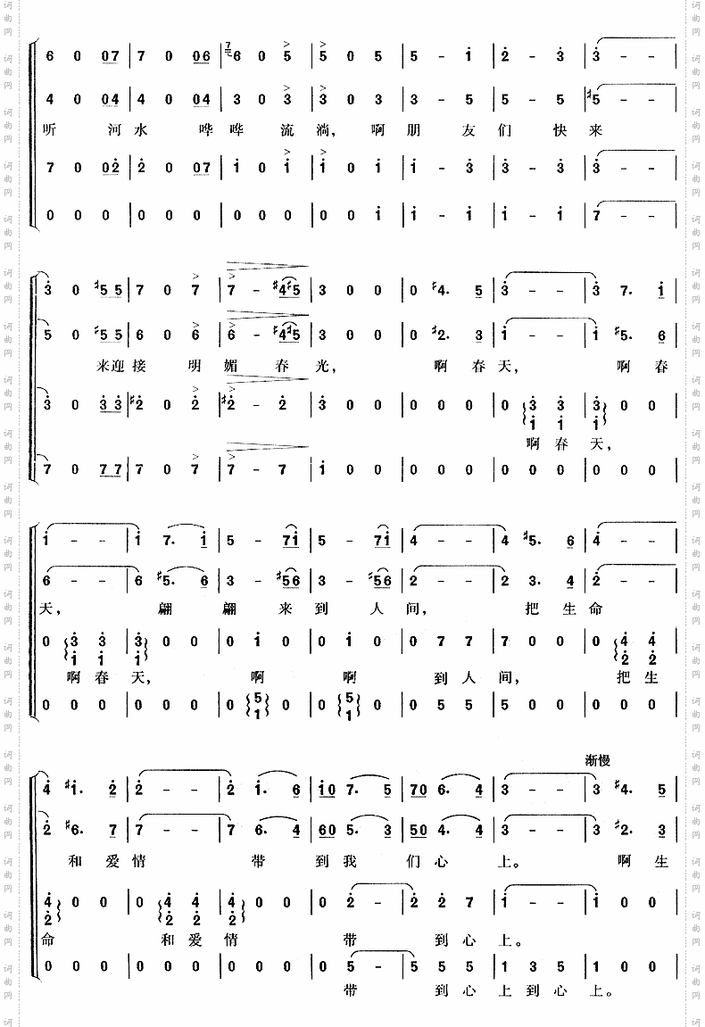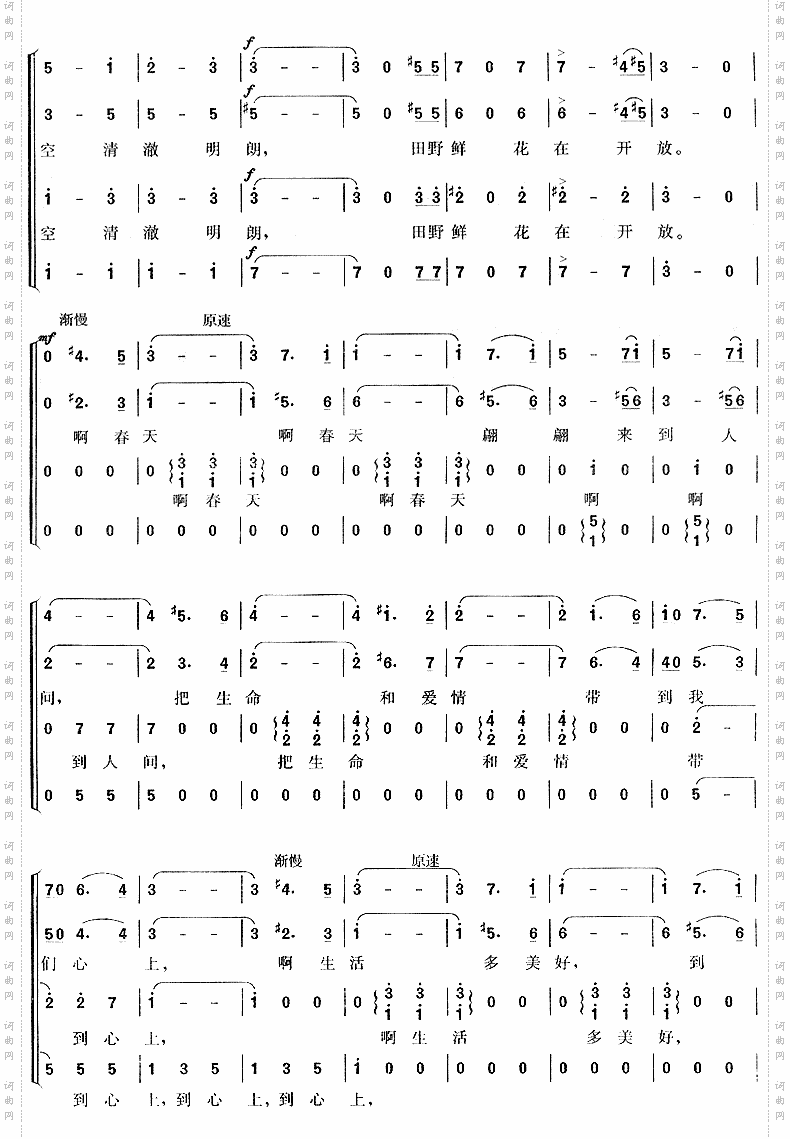 点击页面上方免费下载和打印 春天圆舞曲6曲谱,即可免费下载和打印本曲谱全部内容简谱是音乐的密码本,音符是跳动的心电图。琴谱123曲谱网帮助每个热爱音乐的人学习乐器