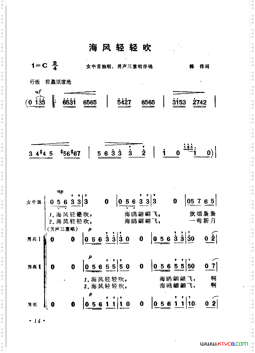 点击页面上方免费下载和打印 海风轻轻吹曲谱,即可免费下载和打印本曲谱全部内容简谱是音乐的密码本,音符是跳动的心电图。琴谱123曲谱网帮助每个热爱音乐的人学习乐器