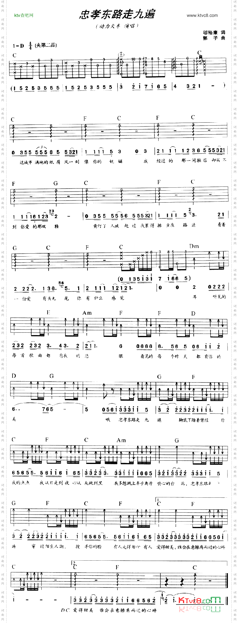 点击页面上方免费下载和打印 忠孝东路走九遍曲谱,即可免费下载和打印本曲谱全部内容简谱是音乐的密码本,音符是跳动的心电图。琴谱123曲谱网帮助每个热爱音乐的人学习乐器