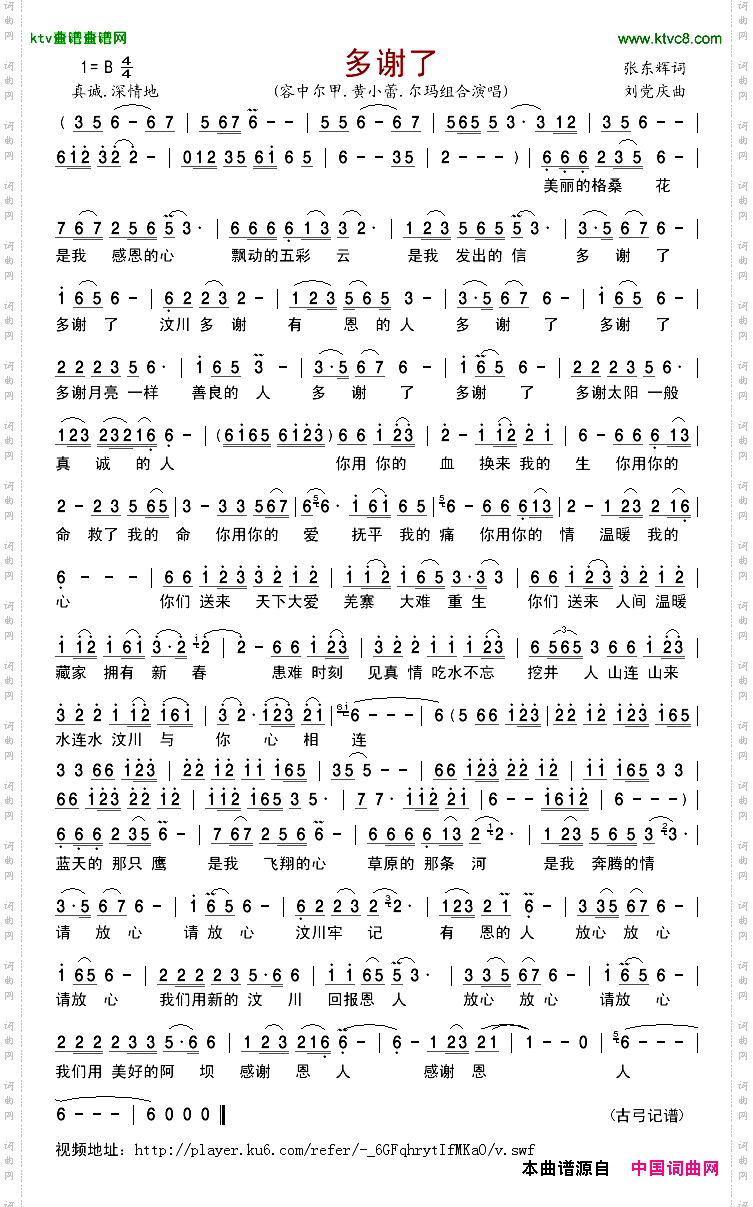点击页面上方免费下载和打印 多谢了汶川地震三周年特别纪念曲谱,即可免费下载和打印本曲谱全部内容简谱是音乐的密码本,音符是跳动的心电图。琴谱123曲谱网帮助每个热爱音乐的人学习乐器