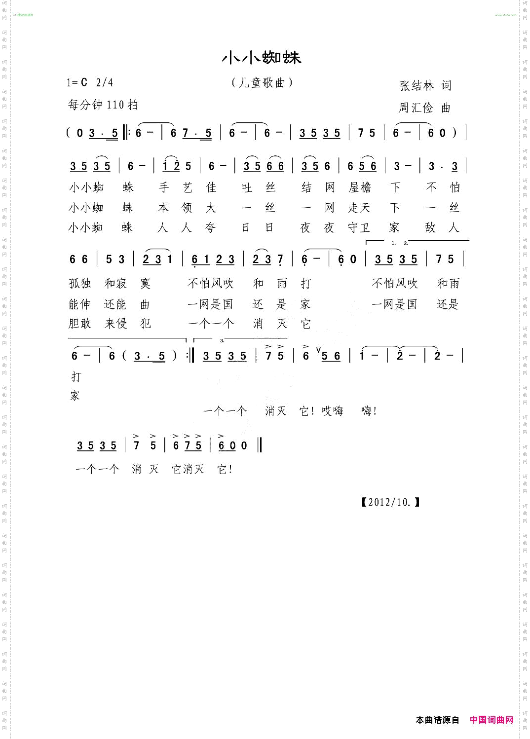 点击页面上方免费下载和打印 小小蜘蛛儿童歌曲曲谱,即可免费下载和打印本曲谱全部内容简谱是音乐的密码本,音符是跳动的心电图。琴谱123曲谱网帮助每个热爱音乐的人学习乐器