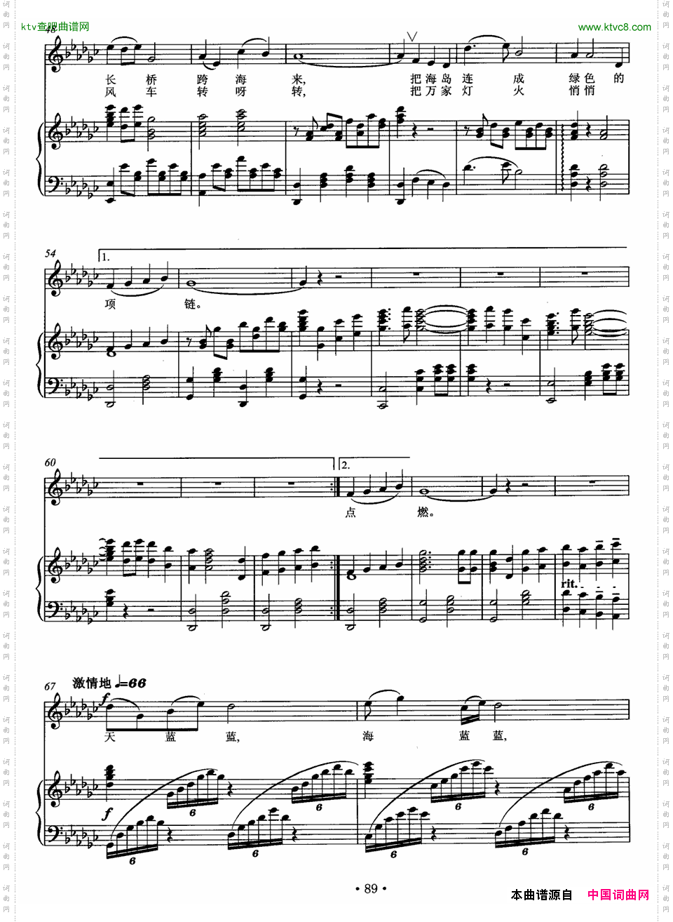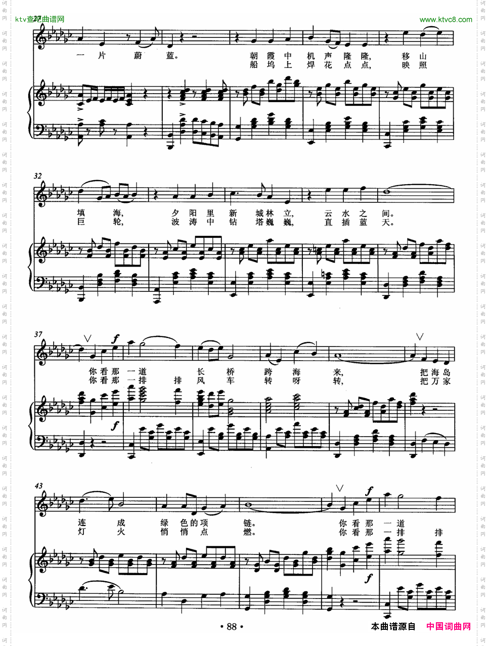 扫描右侧二维码手机上查阅铺开一片蔚蓝正谱的简谱