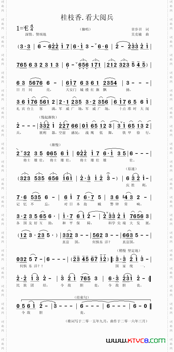 扫描右侧二维码手机上查阅桂枝香.大阅兵章步召词吴克敏曲的简谱