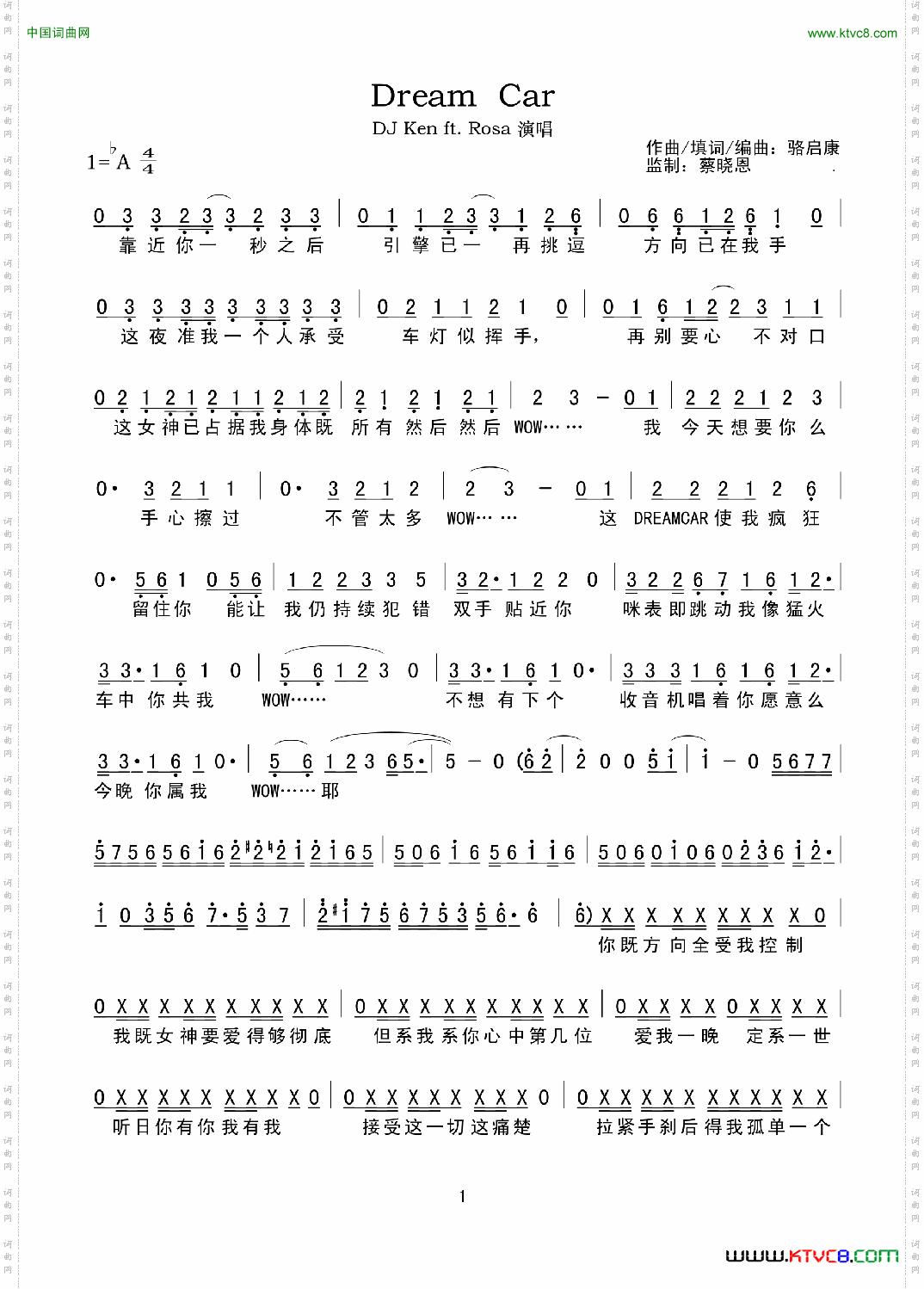 点击页面上方免费下载和打印 DreamCar简谱_Dream Car简谱曲谱,即可免费下载和打印本曲谱全部内容简谱是音乐的密码本,音符是跳动的心电图。琴谱123曲谱网帮助每个热爱音乐的人学习乐器