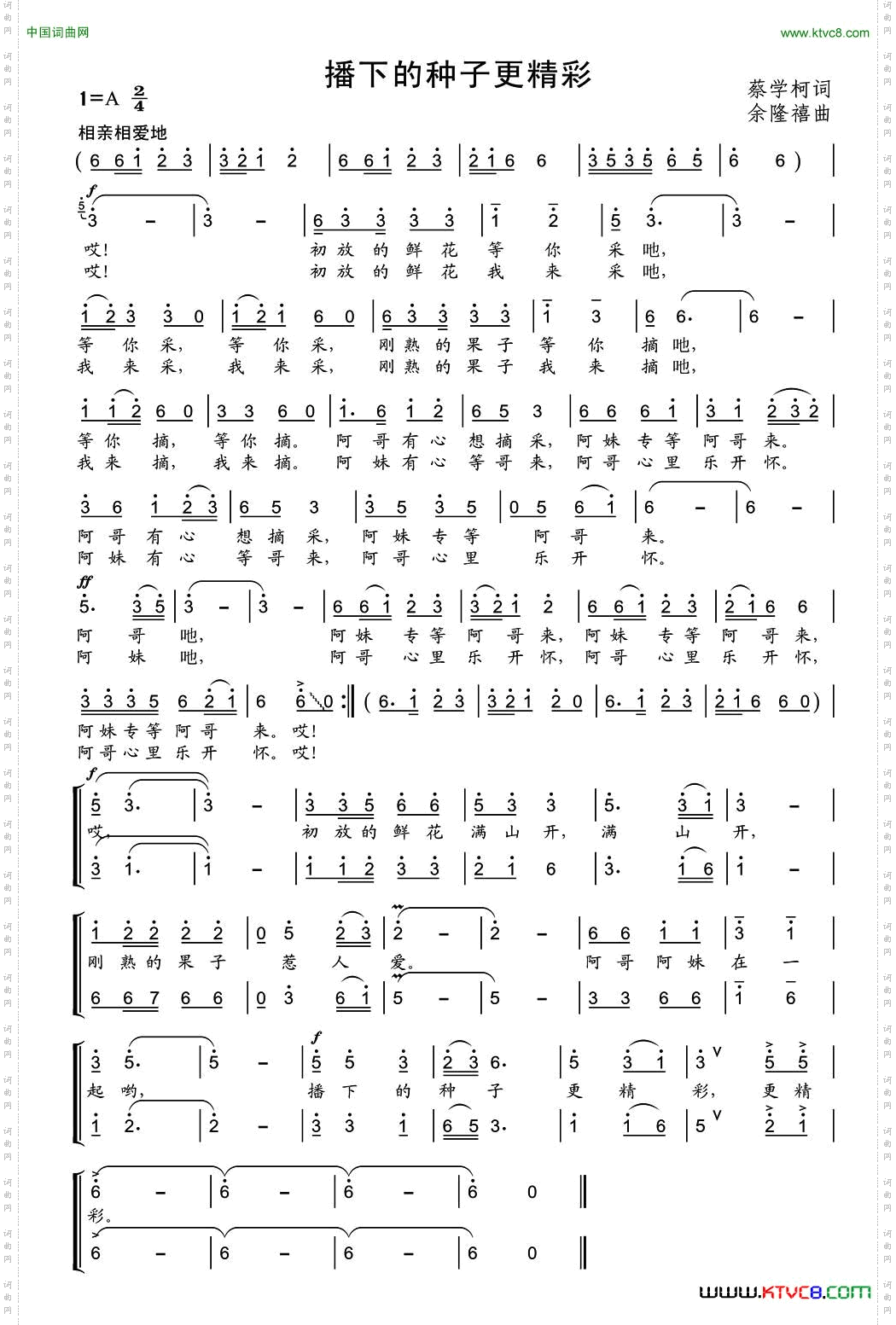 点击页面上方免费下载和打印 播下的种子更精彩曲谱,即可免费下载和打印本曲谱全部内容简谱是音乐的密码本,音符是跳动的心电图。琴谱123曲谱网帮助每个热爱音乐的人学习乐器
