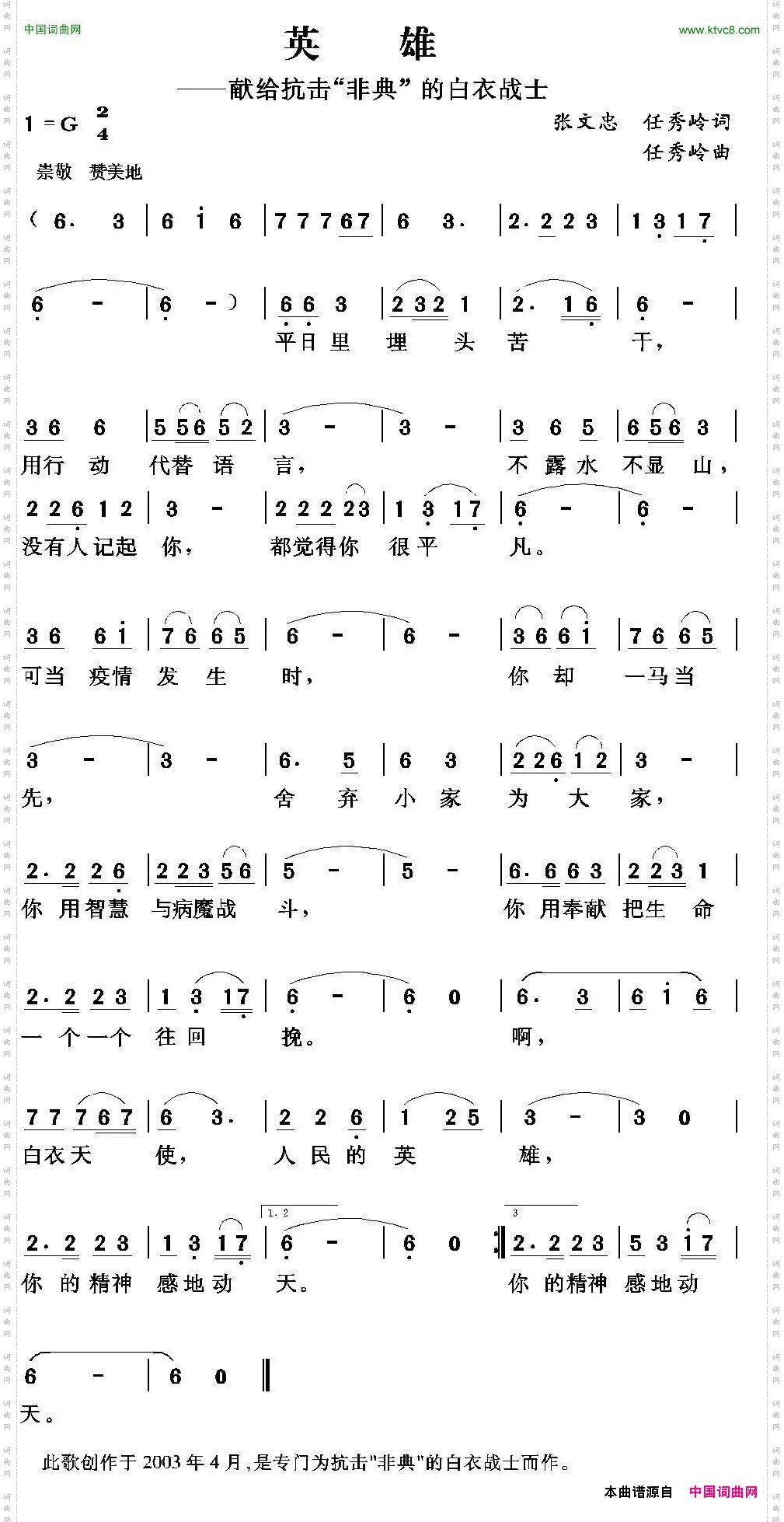 英雄张文忠任秀岭词任秀岭曲_英雄张文忠 任秀岭词 任秀岭曲-简谱