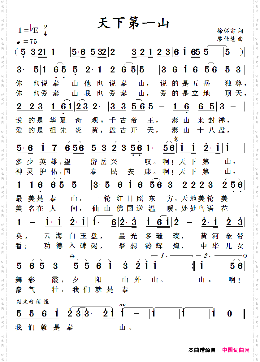 天下第一山徐环宙词廖佳慧曲_天下第一山 徐环宙词 廖佳慧曲-简谱