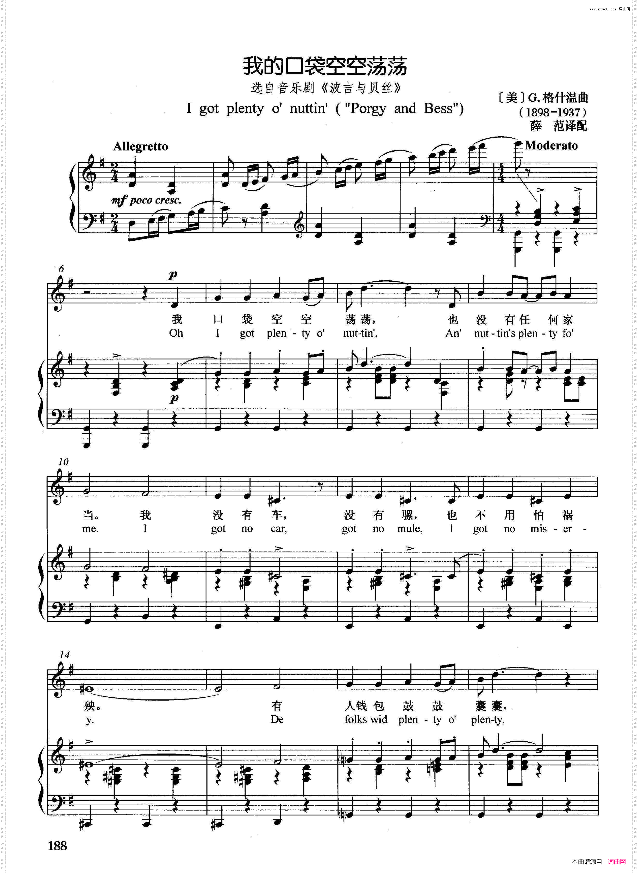 点击页面上方免费下载和打印 [美]我的口袋空空荡荡正谱选自音乐剧《波吉与贝丝》曲谱,即可免费下载和打印本曲谱全部内容
