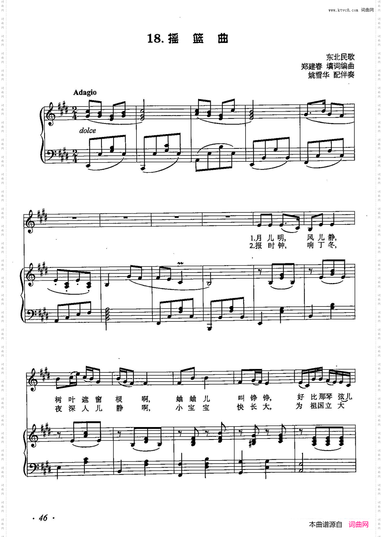 点击页面上方免费下载和打印 丁小琴编-18摇篮曲正谱东北民歌曲谱,即可免费下载和打印本曲谱全部内容简谱是音乐的密码本,音符是跳动的心电图。琴谱123曲谱网帮助每个热爱音乐的人学习乐器