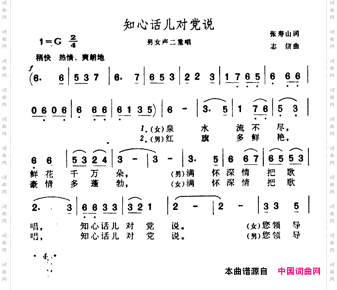 点击页面上方免费下载和打印 知心话儿对党说曲谱,即可免费下载和打印本曲谱全部内容简谱是音乐的密码本,音符是跳动的心电图。琴谱123曲谱网帮助每个热爱音乐的人学习乐器