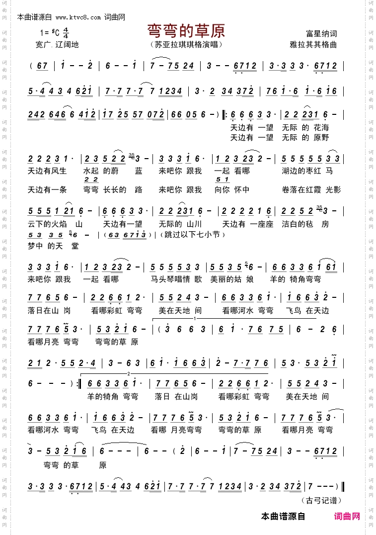 点击页面上方免费下载和打印 弯弯的草原曲谱,即可免费下载和打印本曲谱全部内容简谱是音乐的密码本,音符是跳动的心电图。琴谱123曲谱网帮助每个热爱音乐的人学习乐器