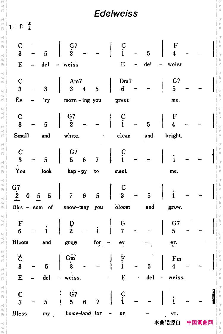 点击页面上方免费下载和打印 【美】Edelweiss雪绒花、带和弦曲谱,即可免费下载和打印本曲谱全部内容简谱是音乐的密码本,音符是跳动的心电图。琴谱123曲谱网帮助每个热爱音乐的人学习乐器