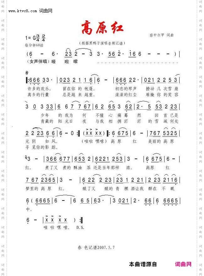 扫描右侧二维码手机上查阅高原红的简谱