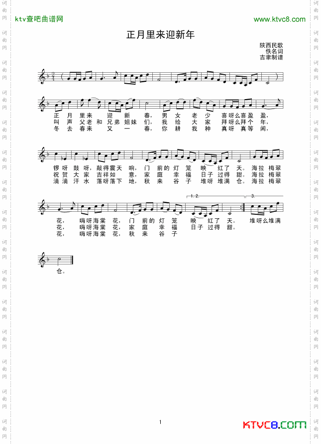 点击页面上方免费下载和打印 正月里来迎新年线谱曲谱,即可免费下载和打印本曲谱全部内容简谱是音乐的密码本,音符是跳动的心电图。琴谱123曲谱网帮助每个热爱音乐的人学习乐器