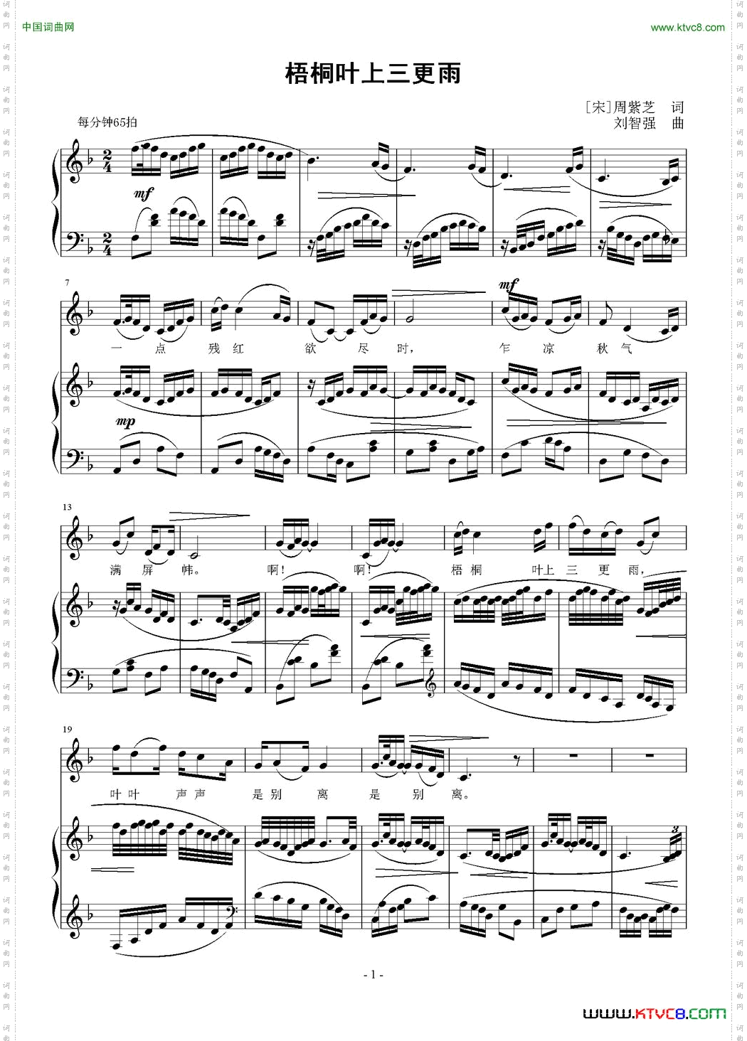 点击页面上方免费下载和打印 梧桐叶上三更雨正谱曲谱,即可免费下载和打印本曲谱全部内容简谱是音乐的密码本,音符是跳动的心电图。琴谱123曲谱网帮助每个热爱音乐的人学习乐器