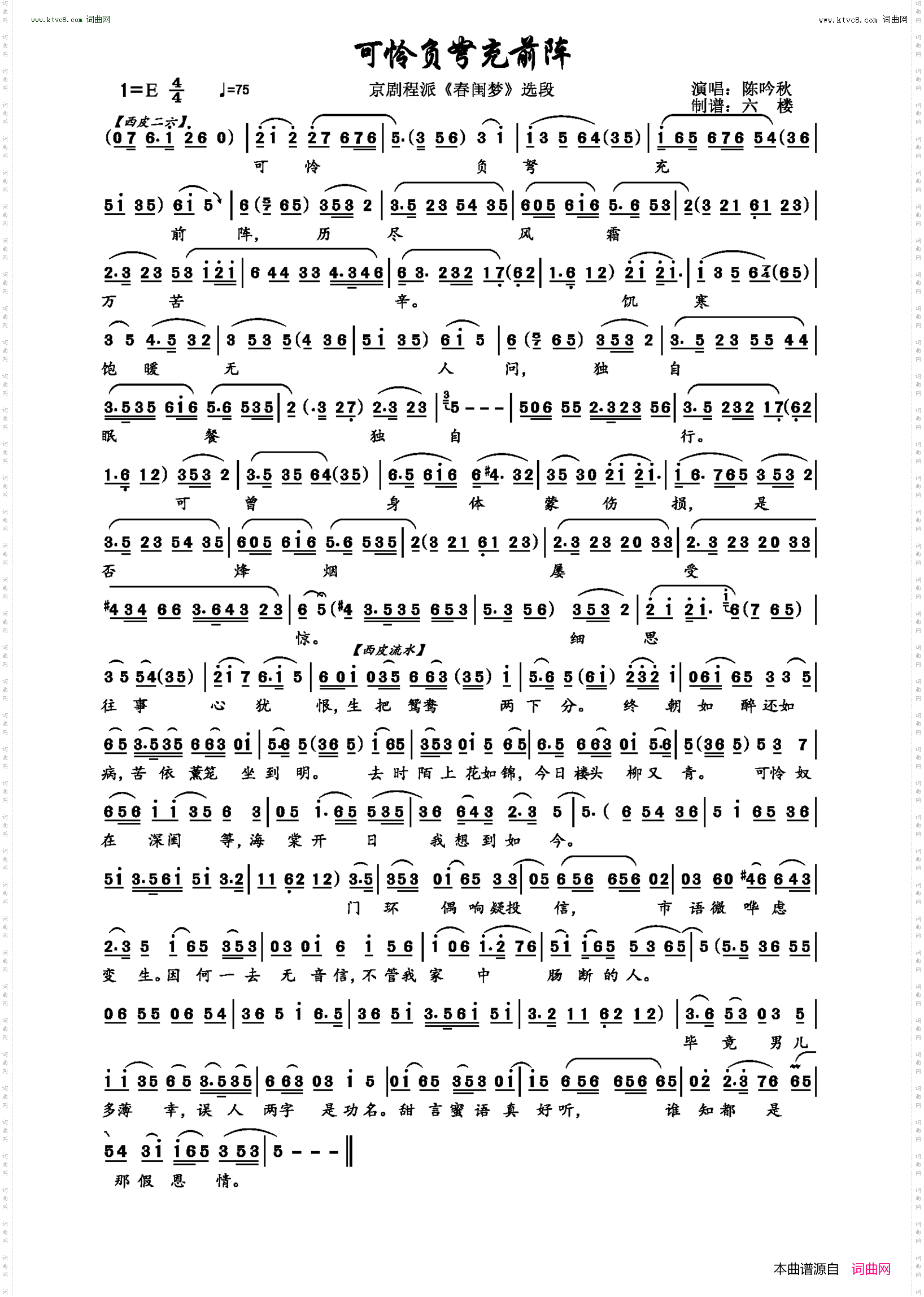 点击页面上方免费下载和打印 可怜负弩充前阵曲谱,即可免费下载和打印本曲谱全部内容简谱是音乐的密码本,音符是跳动的心电图。琴谱123曲谱网帮助每个热爱音乐的人学习乐器