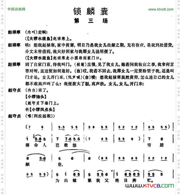扫描右侧二维码手机上查阅锁麟囊_ 第三场的京剧戏谱