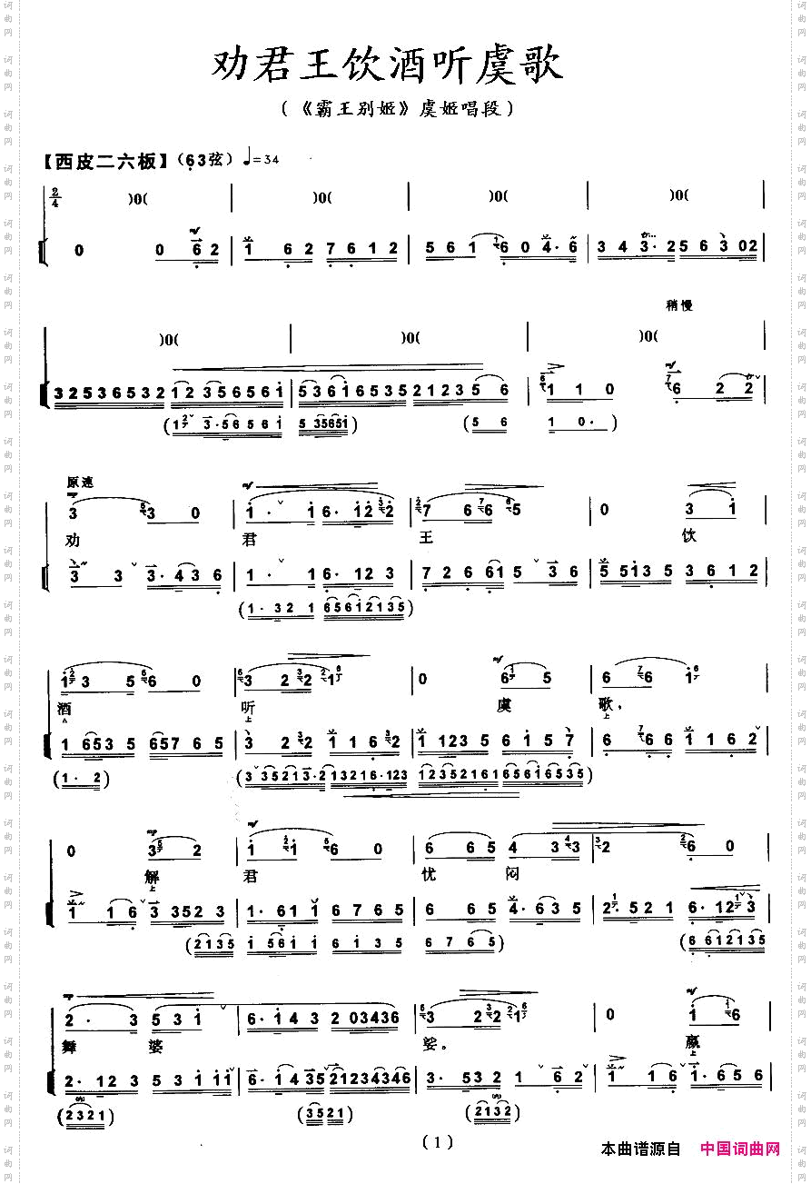 点击页面上方免费下载和打印 劝君王饮酒听虞歌_《霸王别姬》虞姬唱段版本二曲谱,即可免费下载和打印本曲谱全部内容简谱是音乐的密码本,音符是跳动的心电图。琴谱123曲谱网帮助每个热爱音乐的人学习乐器