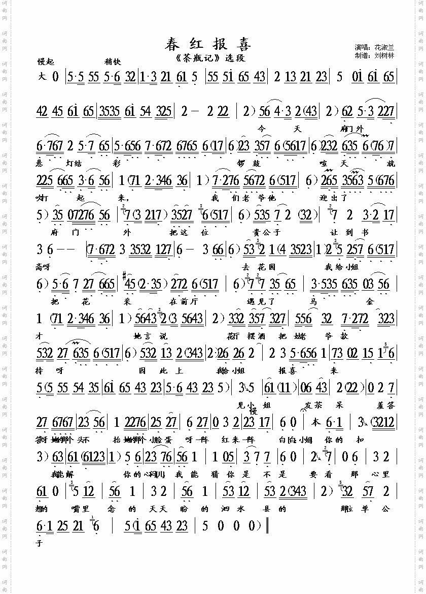 点击页面上方免费下载和打印 评剧《茶瓶记》春红报喜曲谱,即可免费下载和打印本曲谱全部内容简谱是音乐的密码本,音符是跳动的心电图。琴谱123曲谱网帮助每个热爱音乐的人学习乐器
